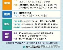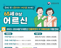 - 대상: 65세 이상 어르신, 생후 6개월 ~ 13세 어린이, 임신부, 14~64세 시민 중 기초생활수급자, 중증장애인, 국가유공자 등 (지자체 추가 지원 대상)
